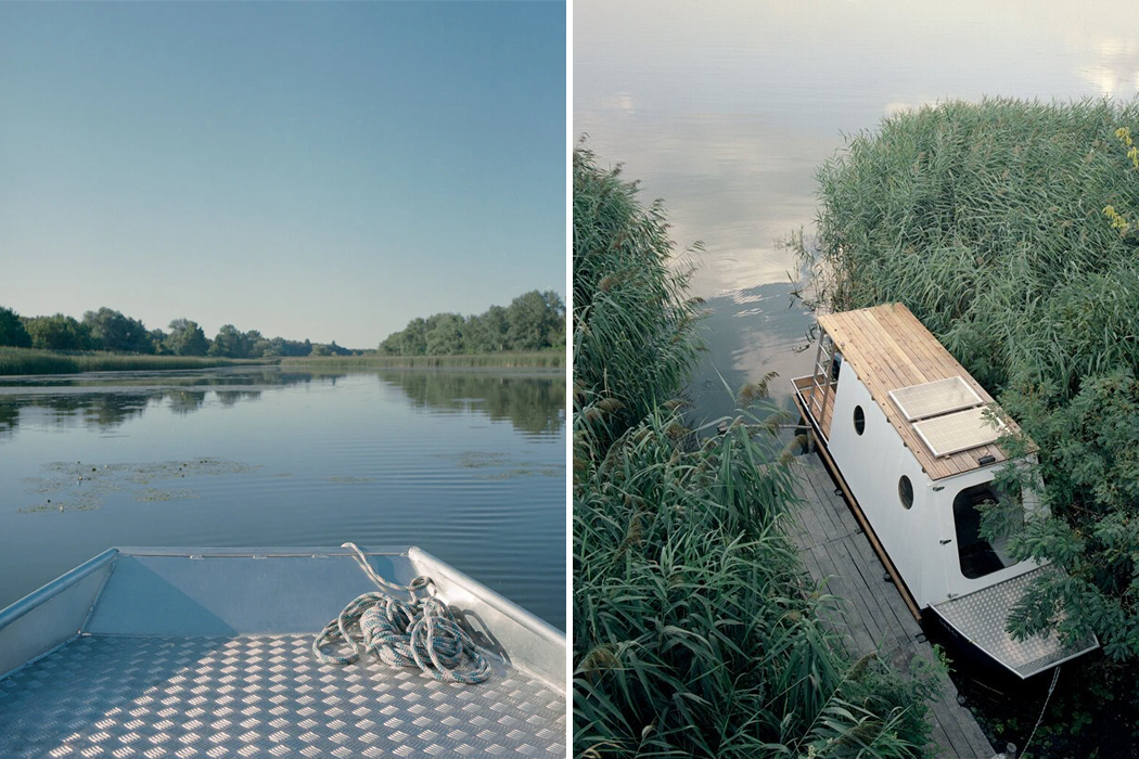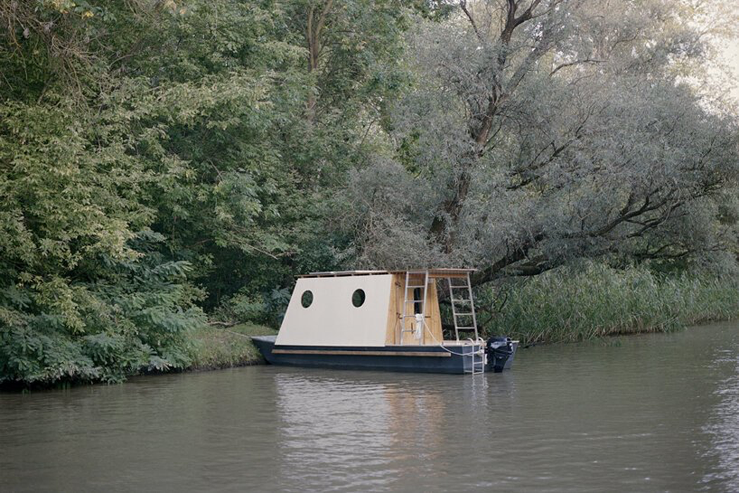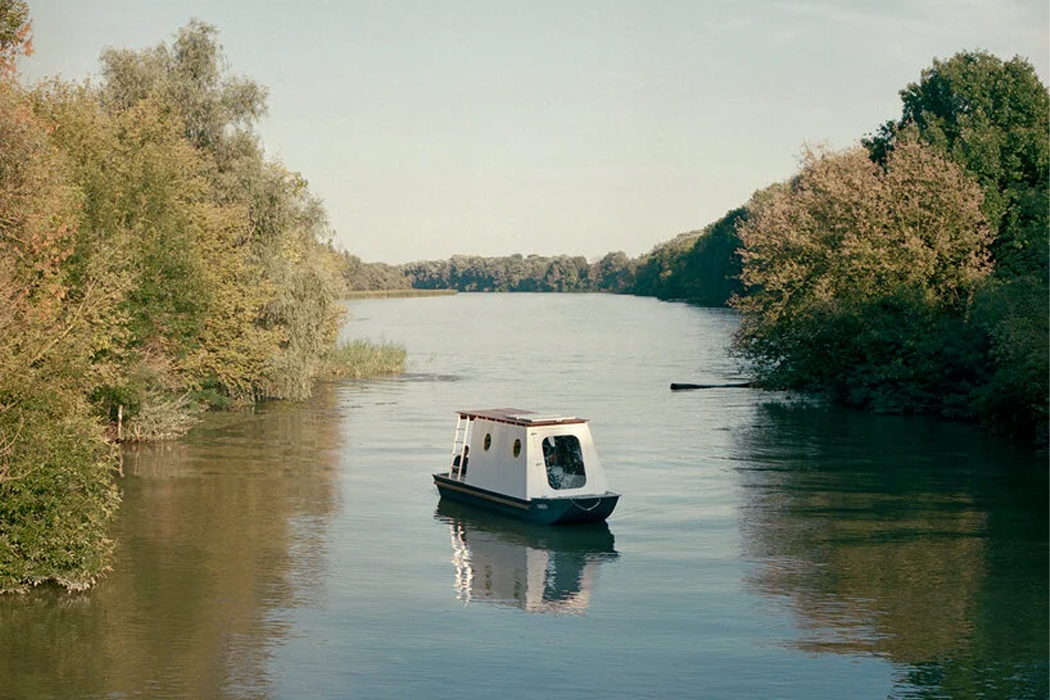 Floating idly by the waters of Lake Tisza, a small, white houseboat called Sneci carries a city-dwelling couple who call the tiny vessel home. Tamás Bene, a Hungary-based architect, designed Sneci with sustainability and mobility bringing him his main inspiration. The couple, originally from Budapest, sought Bene out to build a summer home that wasn’t grounded or fixed but embedded in the beauty of The Great Hungarian Plain’s Lake Tisza.